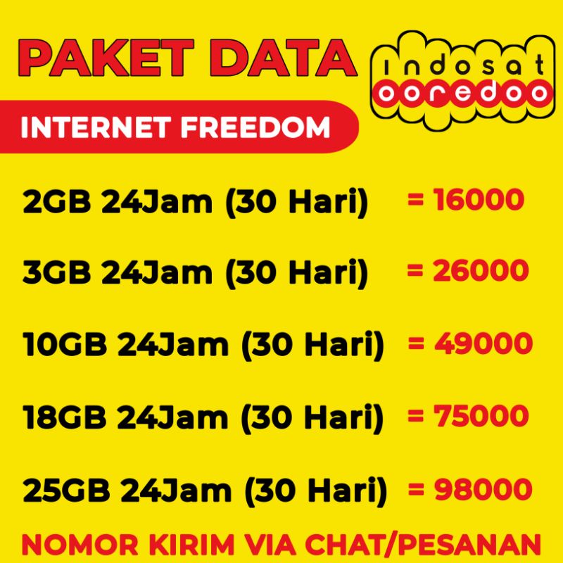 Berbagai pilihan paket internet indosat murah. Isi ulang kuota internet injek paket data voucher indosat ooredoo freedom internet 21gb kuota full 24 jam. Indosat ooredoo isi ulang inject injek top up paket data internet kuota. Paket indosat freedom kuota harian (1gb/hari) inject & voucher termurah. Cantumkan no hp anda karena ini sistem injeksi bukan voucher.